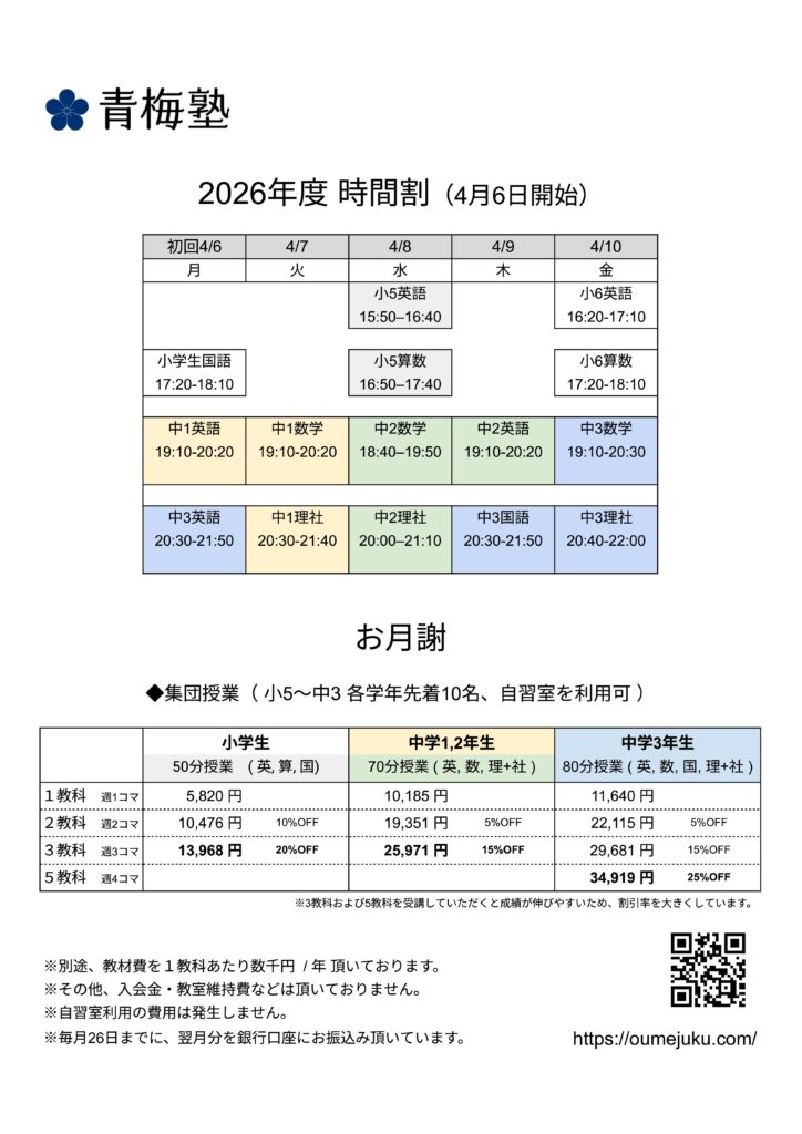 コース・お月謝 2026年度